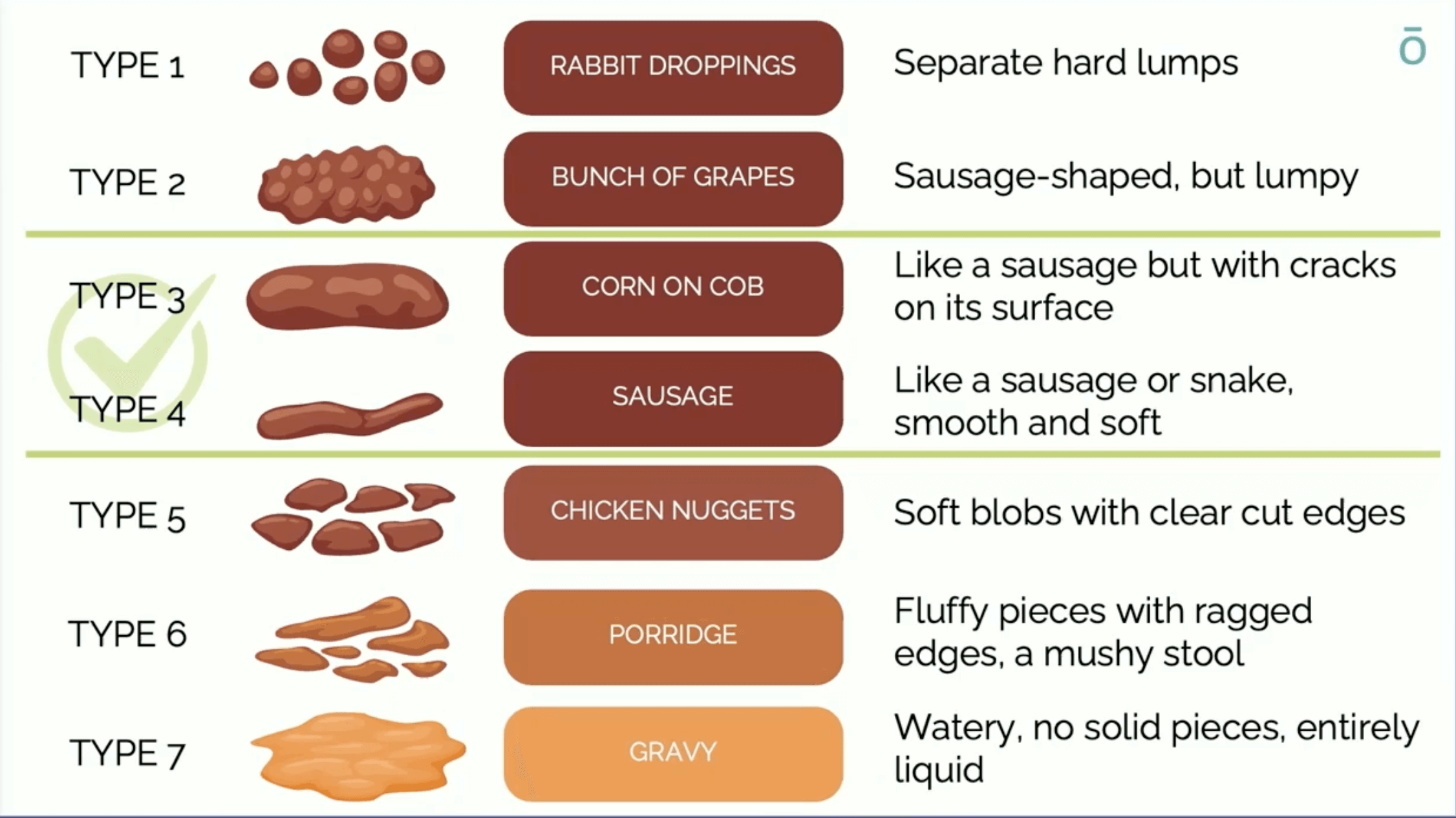 According to this chart, the healthiest types of bowel movements are Type 3 and Type 4 —