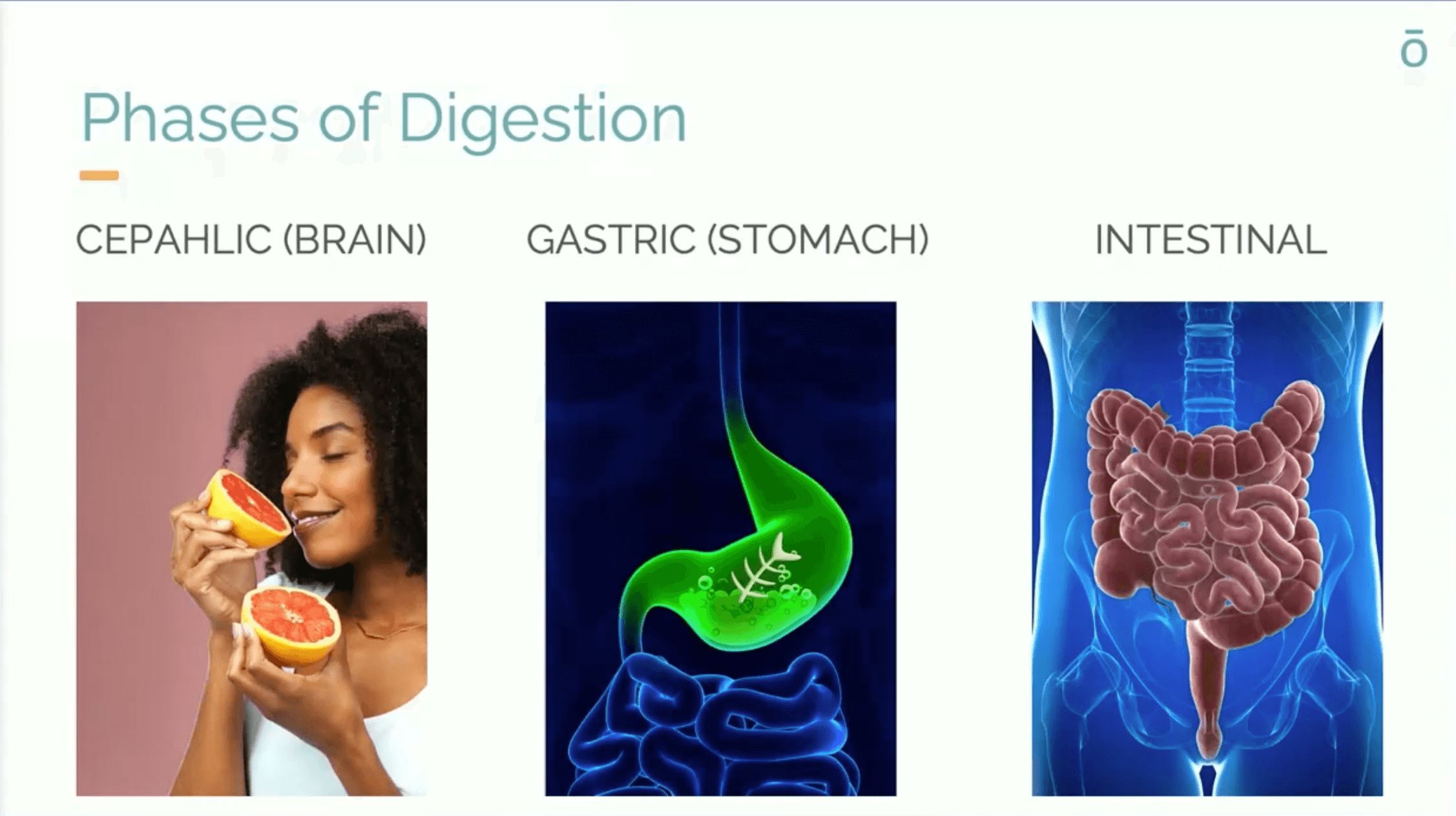 Triggered by the sight, smell, and thought of food. This phase activates digestive juices and primes your stomach through the vagus nerve.To optimize this phase, reduce stress before meals with: