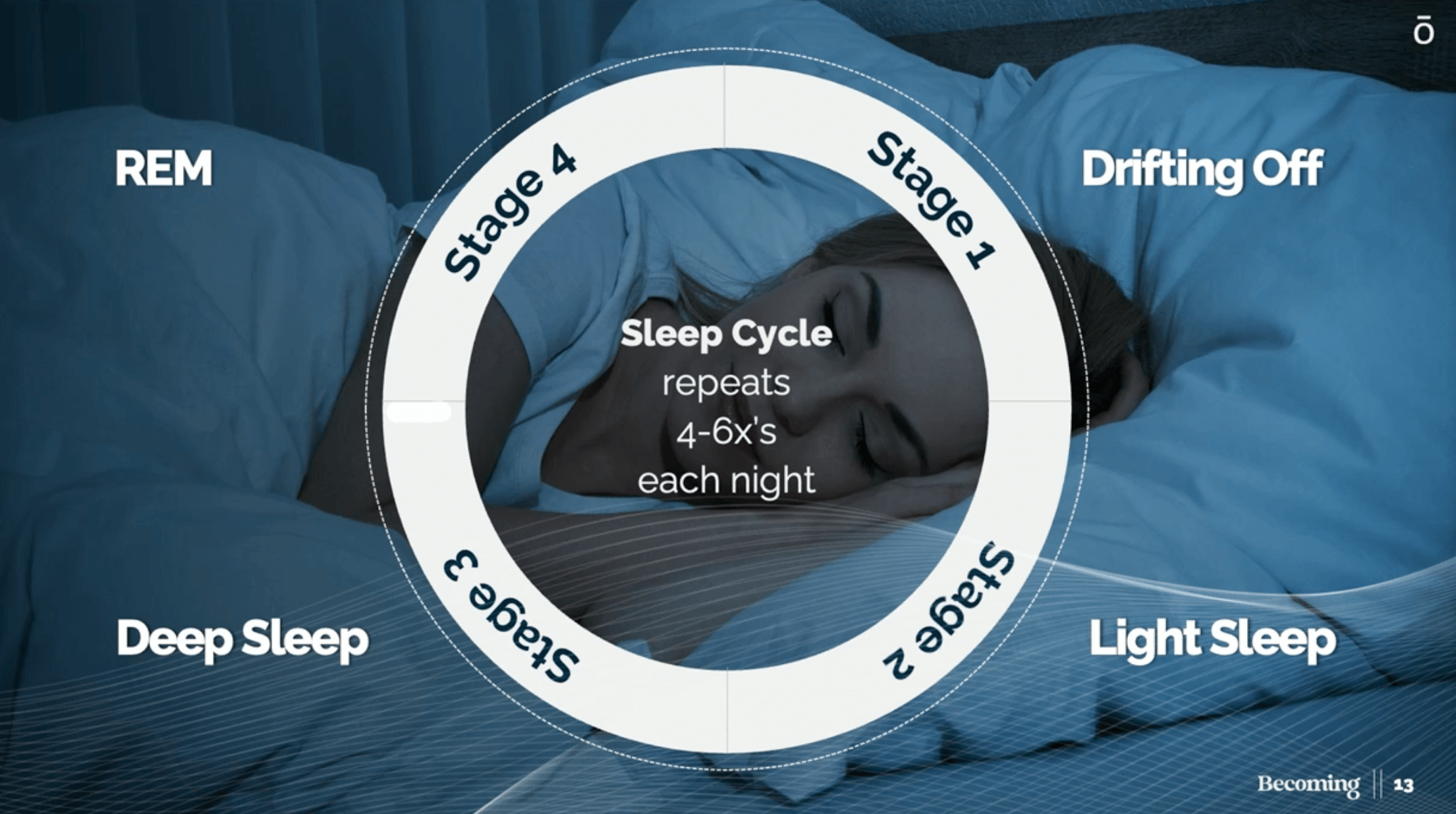 Sleep follows a repeating four-stage cycle throughout the night, each serving a unique purpose in repair and rejuvenation.