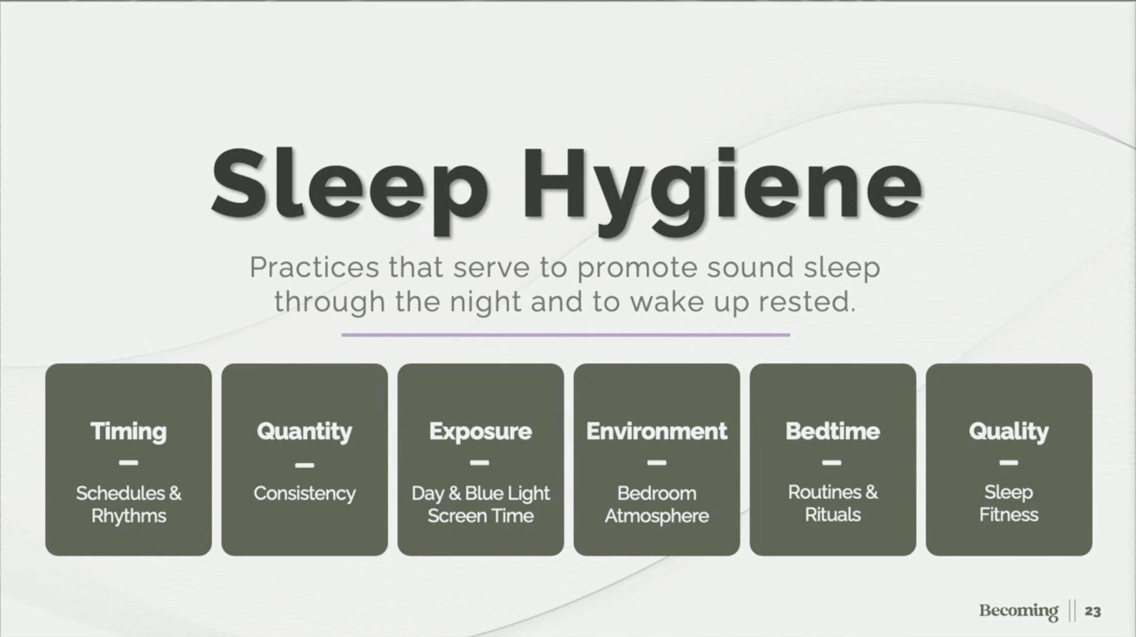 “Sleep hygiene” refers to the habits and environment that support consistent, quality sleep.