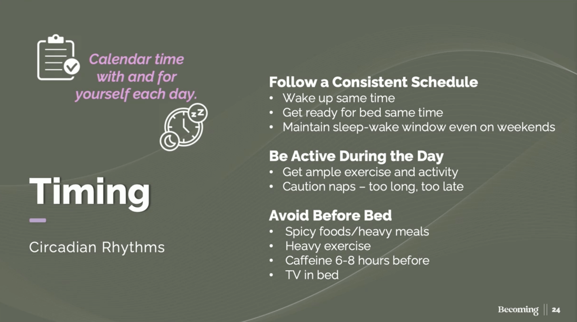 Understand your rhythm. Honor your body’s natural sleep-wake cycle.