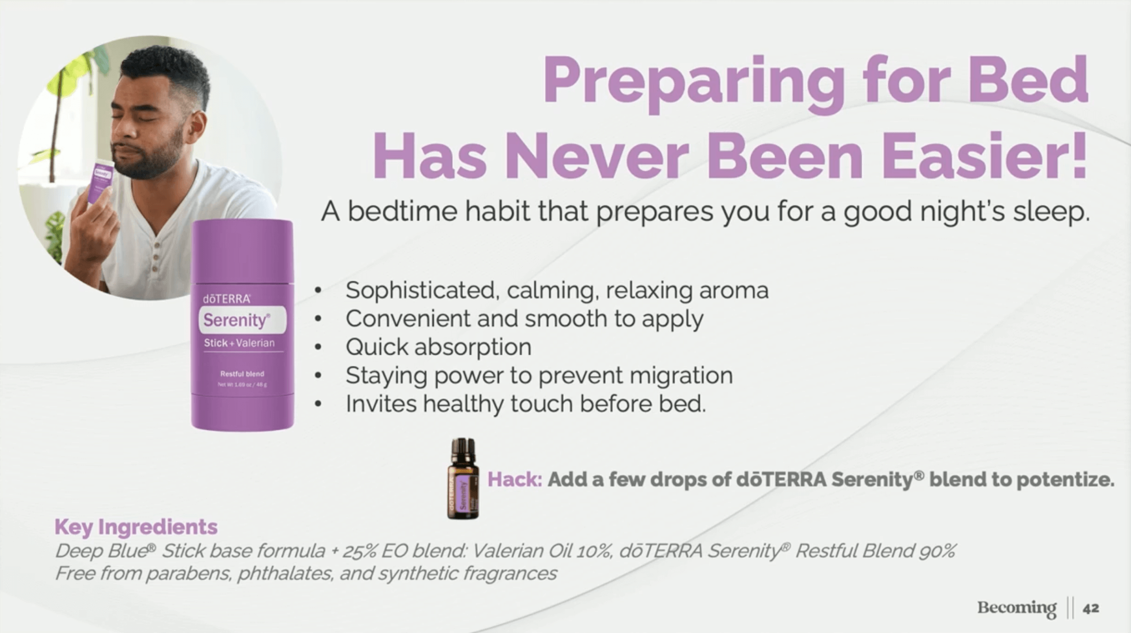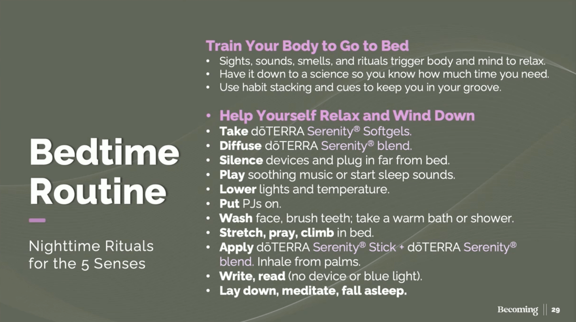 This is why doTERRA educators often recommend pairing Adaptiv during the day (to manage stress) with Serenity at night (to release it).