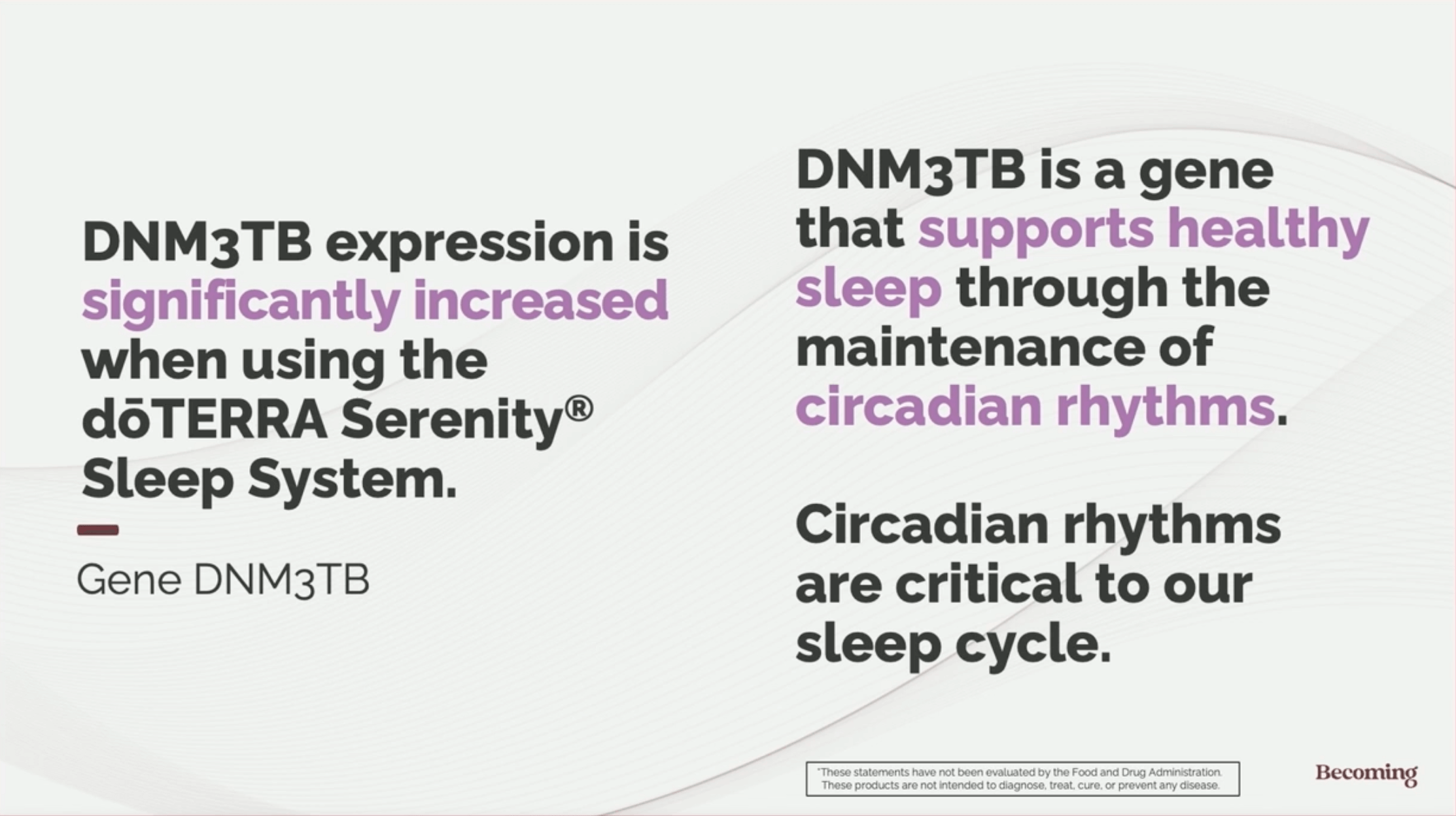 The findings confirm that doTERRA’s Serenity Sleep System influences gene expression linked to: