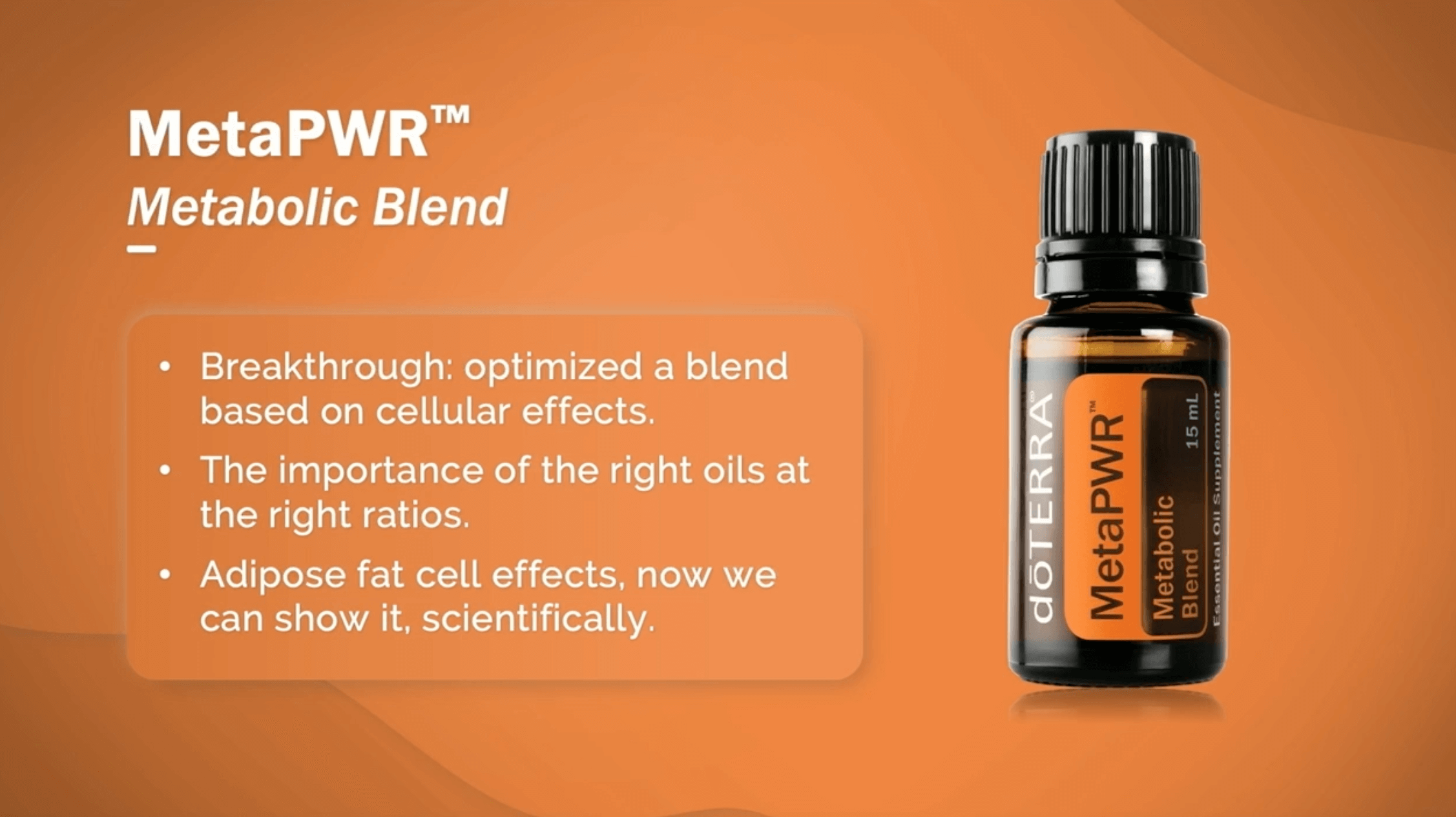 MetaPWR Essential Oil Blend — sends healthy messages to your cells and fat metabolism.
