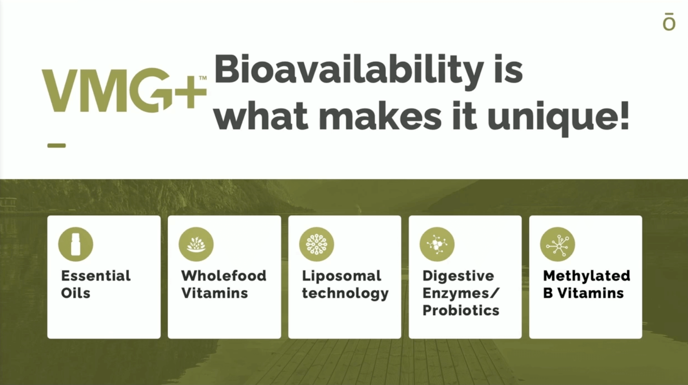 VMG+ uses five advanced bioavailability technologies, including liposomal delivery, fermentation, methylated B vitamins, and essential oil integration, all proven to increase nutrient uptake and retention.