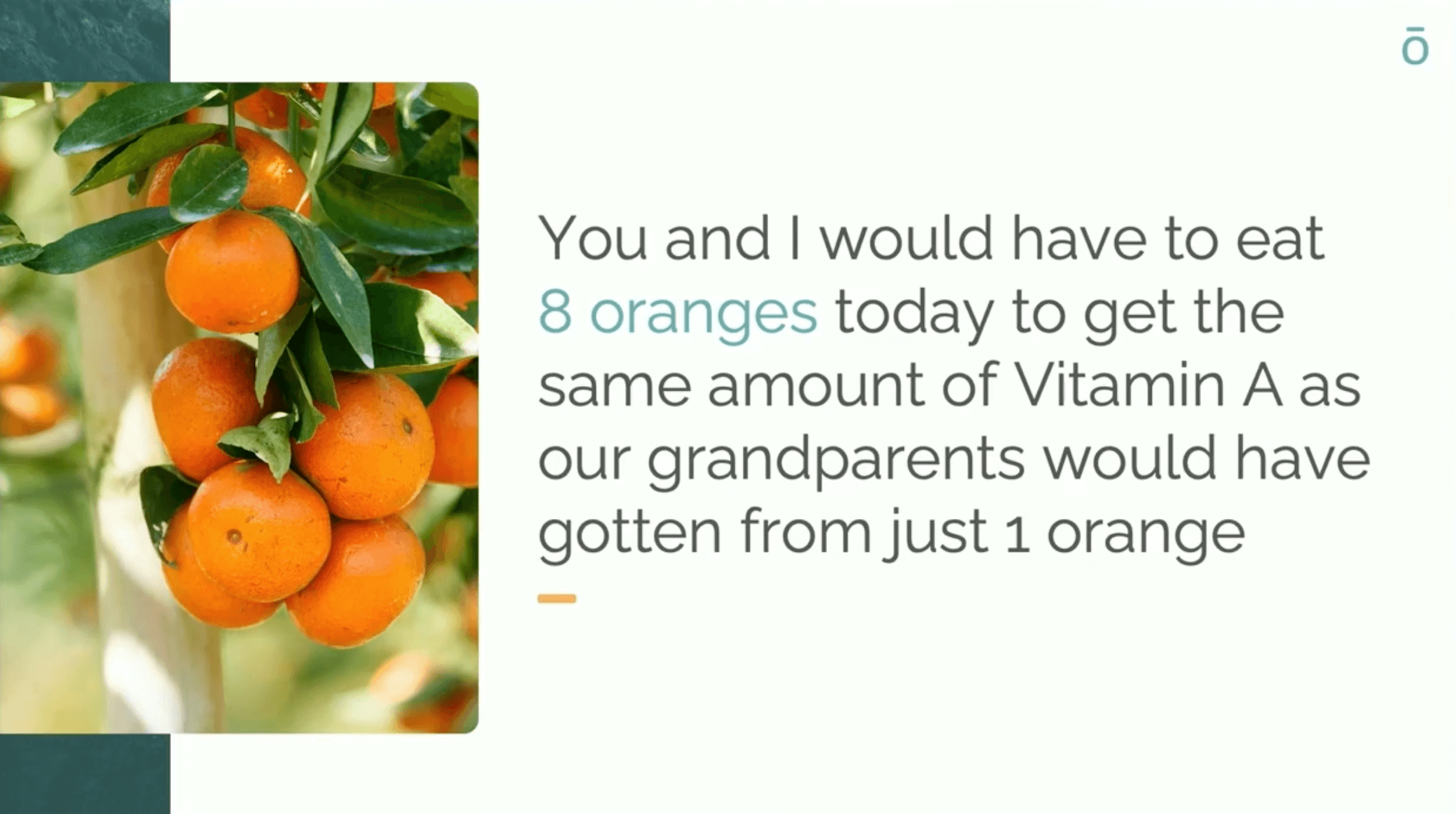 “You’d have to eat eight oranges today to get the same amount of vitamin A your grandparents got from one.”