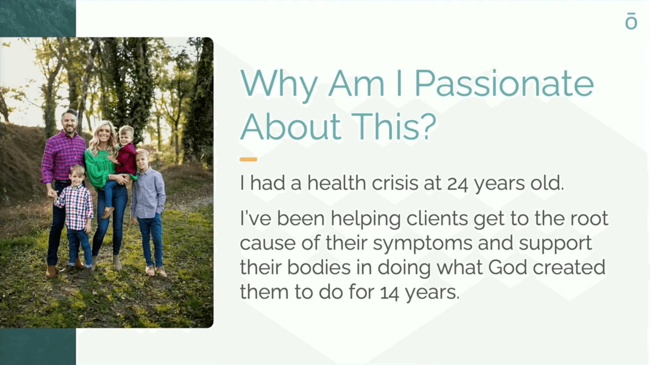 “God created our bodies with the ability to heal themselves. We just have to give them what they need.”