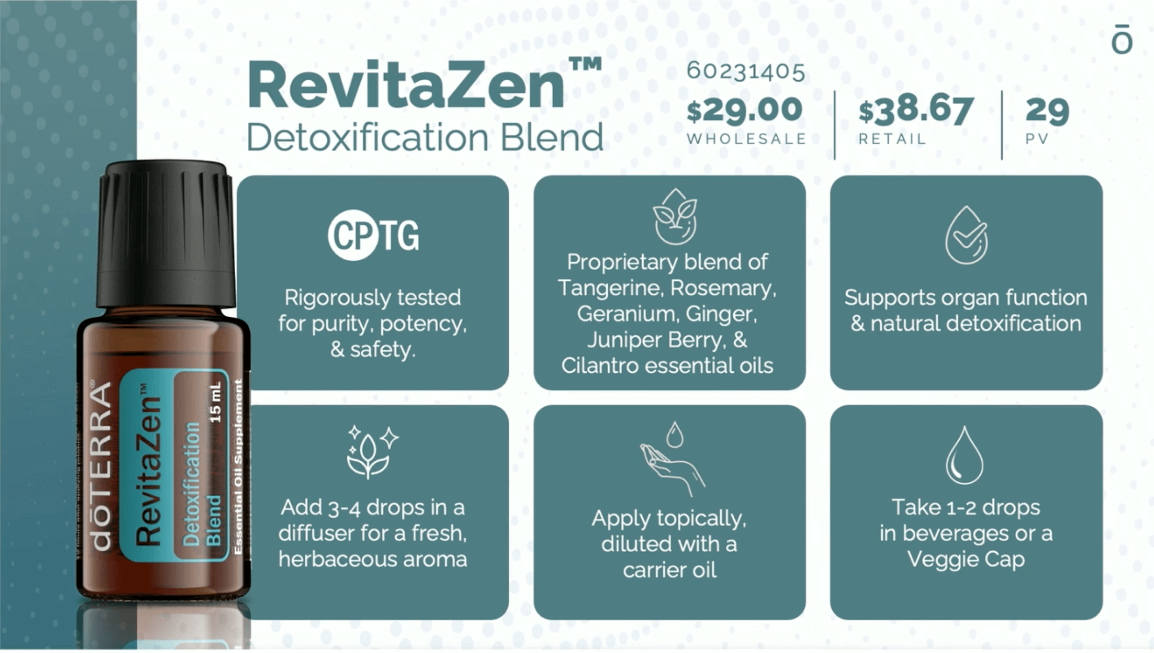 Inspired by Zendocrine, this essential oil blend was crafted with CPTG® oils chosen for their potency and organ-supportive benefits: