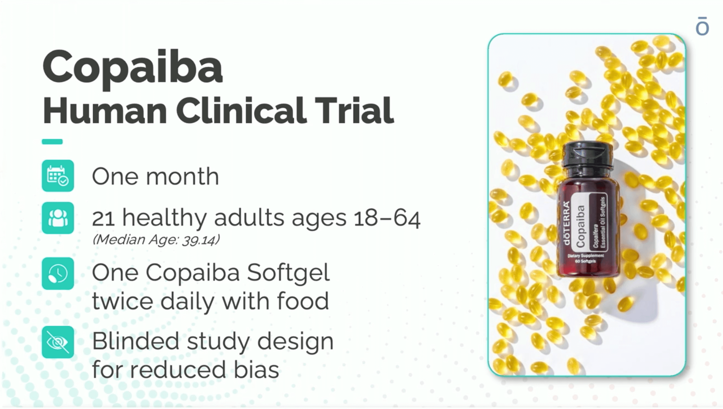 A first-of-its-kind study on Copaiba essential oil softgels revealed striking results after just one month of daily use. And because doTERRA’s oils are consistent and pure, the data is not only reliable—it’s reproducible.
