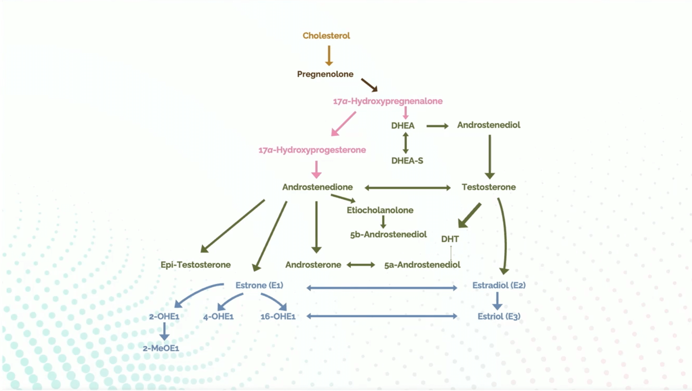 I know this chart can look overwhelming at first—but don’t worry, you don’t need to memorize it. What matters is the story it tells: how every sex hormone in your body is created.