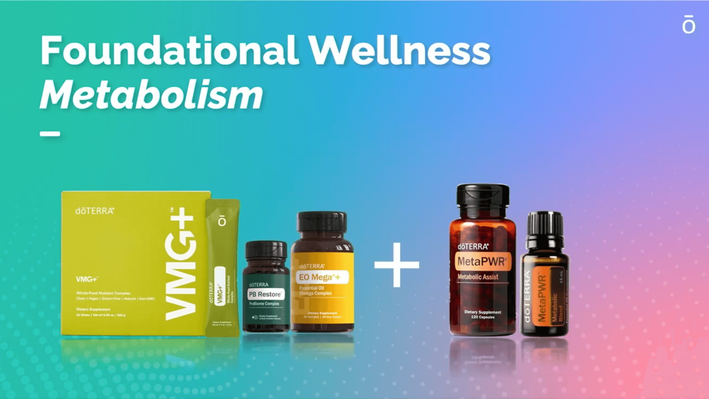 Foundations: VMg+ (micronutrients), E Omega+ (essential fatty acids), PB Restore (gut support).
